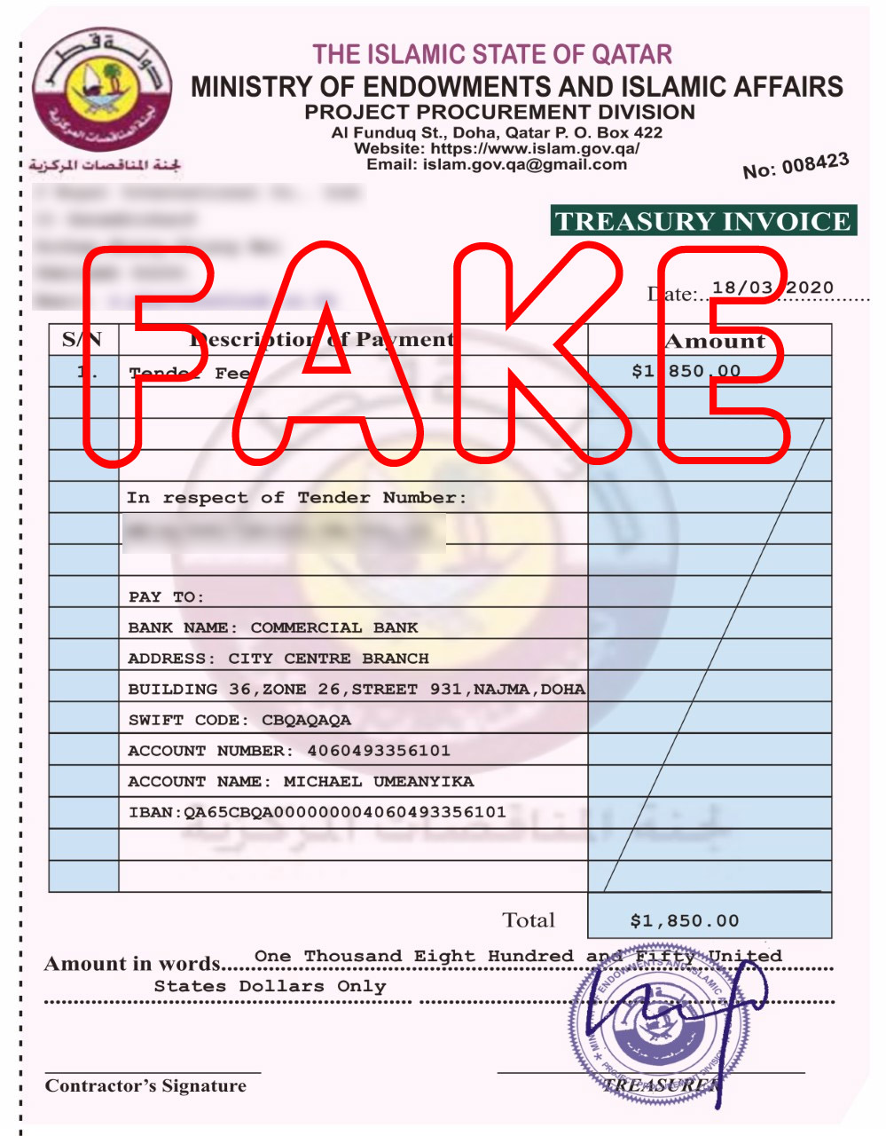 Islam Gov Qa Gmail Com Fake Tender Scam Stop 419 Scams And